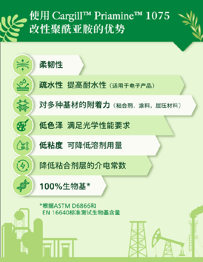 Priamine 1075是我们目前产品中纯度最高,色泽最低的产品。尤其适用于柔性电路板,电子粘合剂以及电子涂层等应用。如需了解更多请联系13823612493 赵先生
